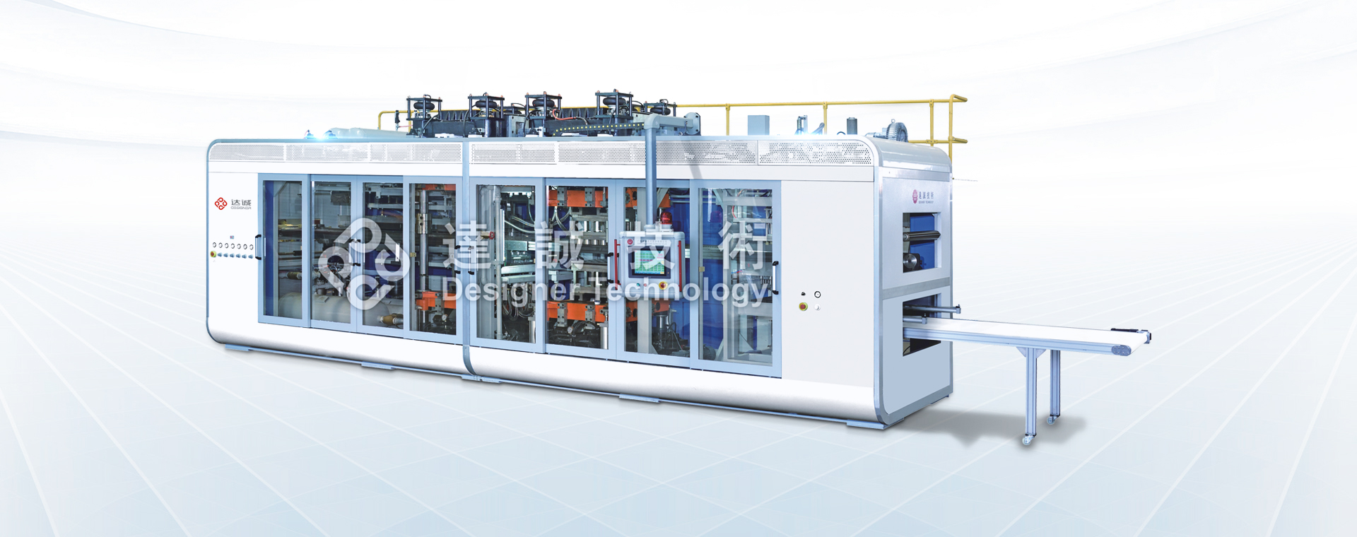 成型工位、沖孔工位、沖剪工位采用上下兩組伺服電機(jī)控制,驅(qū)動(dòng)偏心輪連桿結(jié)構(gòu)分別帶動(dòng)兩模臺(tái)上下運(yùn)動(dòng)并配備正負(fù)壓氣源,可實(shí)現(xiàn)產(chǎn)品正負(fù)壓成型。